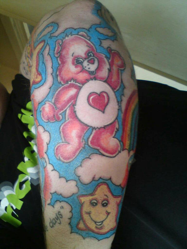 Lunatic Tattoo Having Fun With This Care Bear Sleeve About 3 75 Hours This Sitting After An Initial Outline Session Color Or Grayscale Custom Designs All Day We Re Happy To Do It